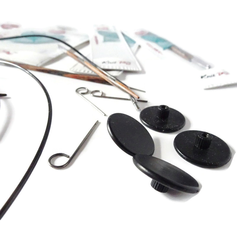 W komplecie z żyłką jest dokręcana końcówka (2 szt) do zabezpieczania oczek po odkręceniu drutu