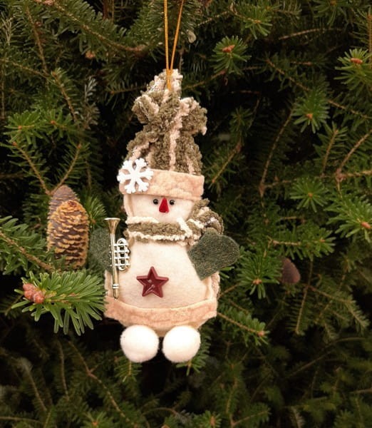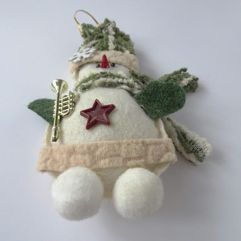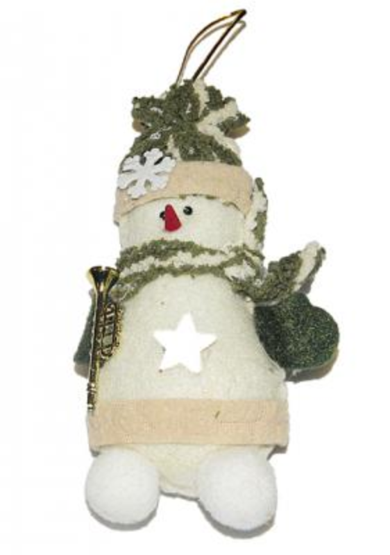 Bałwanek z filcu, wypchany watą na miękko, ozdoba do zawieszenia.