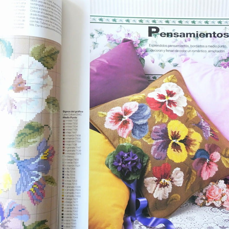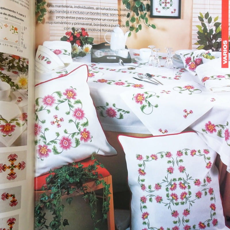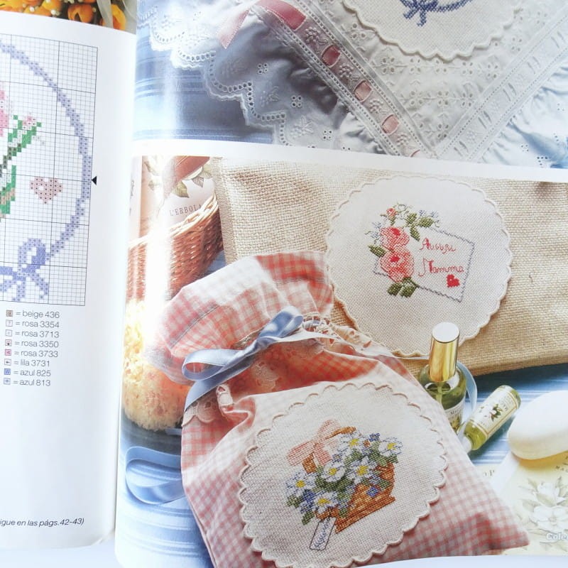 wzorami i instrukcjami na haft krzyżykowy, haft płaski, haft richelieu.