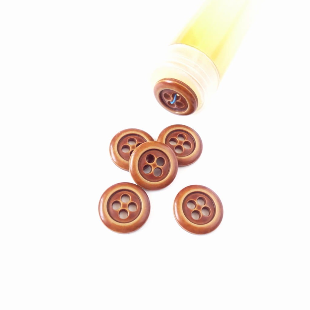 Guzik w kolorze rudym o średnicy 22 mm, płaski, a la skórzany,