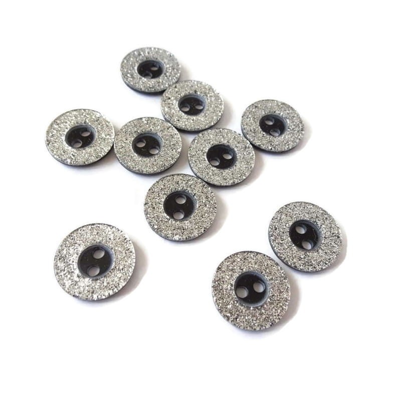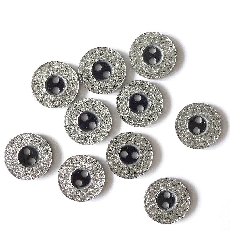 Guzik czarny z brokatem 15 mm kpl / 10 szt