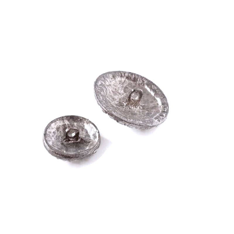 Guzik metalowy w kolorze srebrnym z oczkami,