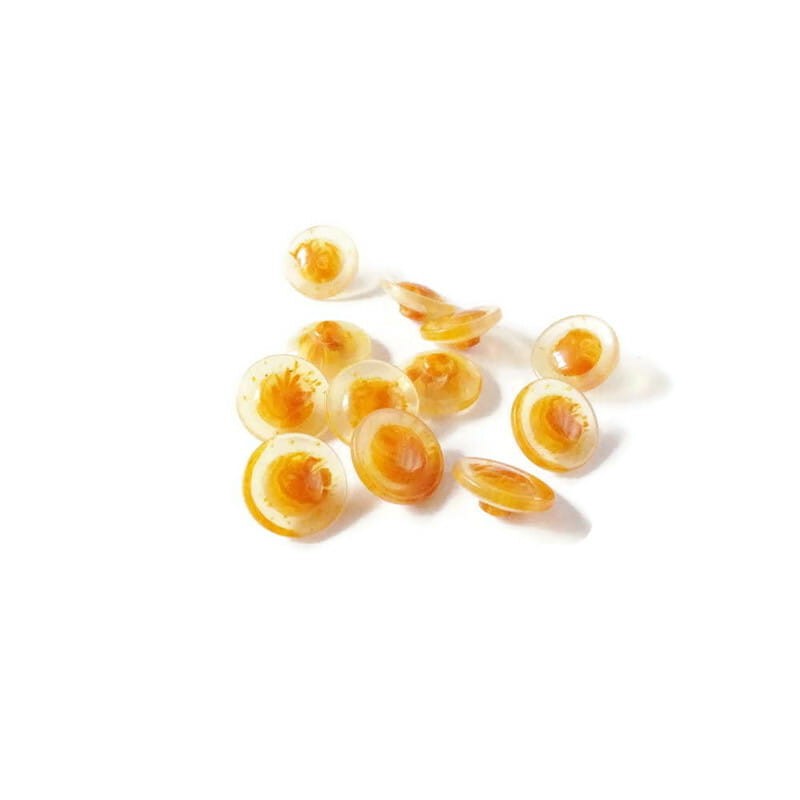 Guzik plastikowy, kolor miodowy o średnicy 18 mm, na nóżce.