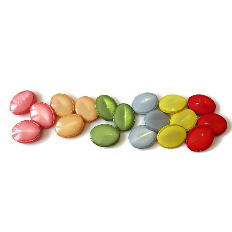 Guzik perłowy, owalny, o wymiarach 35 x 28 mm.