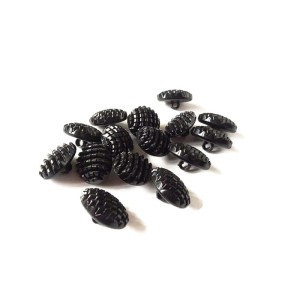 Guzik plastikowy imitacja czarnych koralików, owalny