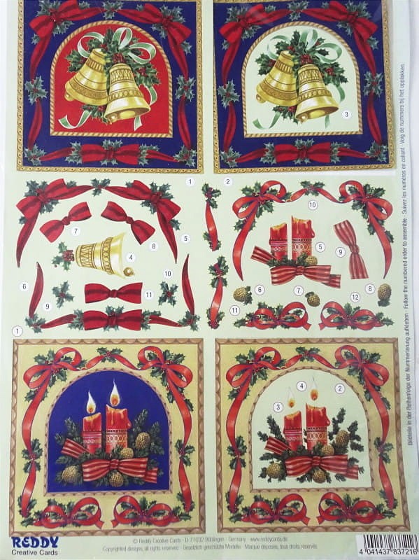 Karta formatu A4 wzorów świątecznych bożenarodzeniowych do wykonania 2 kartek w technice 3D.