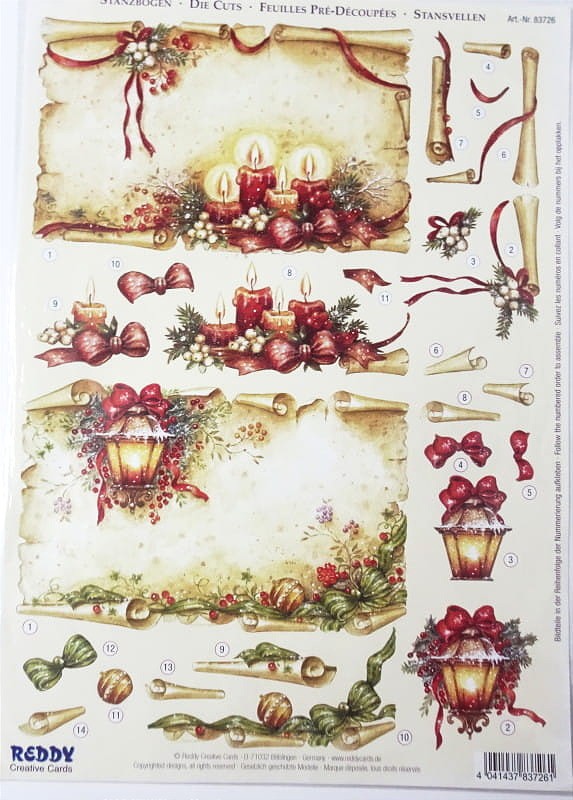 Karta formatu A4 ze wzorami świątecznymi na boże narodzenie  do wykonania 2 kartek w technice 3D.