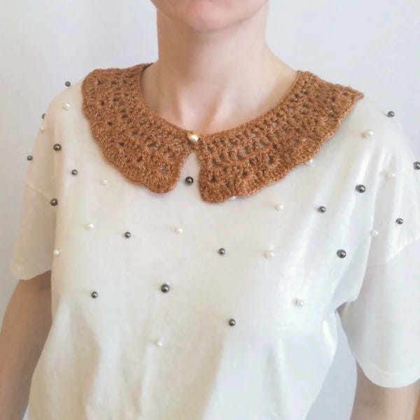 Szydełkowy kołnierzyk wykonany ręcznie z jakościowo dobrej włóczki,