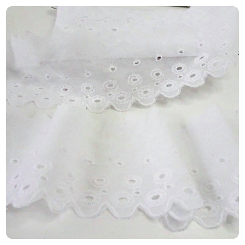 Koronka bawełniana z haftem angielskim do celów zdobniczych,