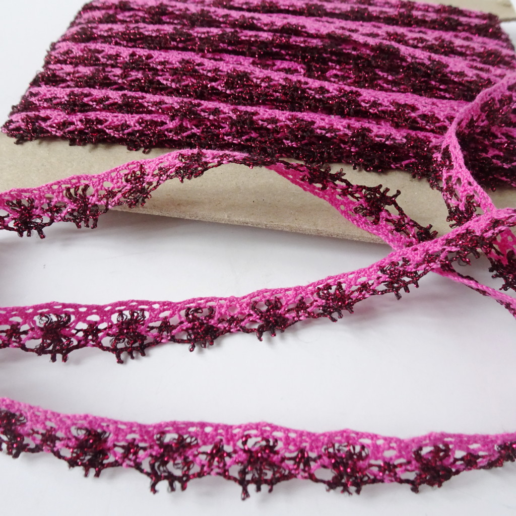 - kolor: różowo-bordowy z nitką metalizowaną