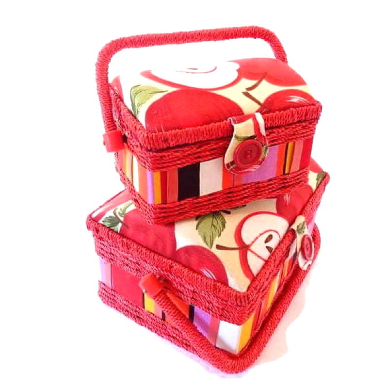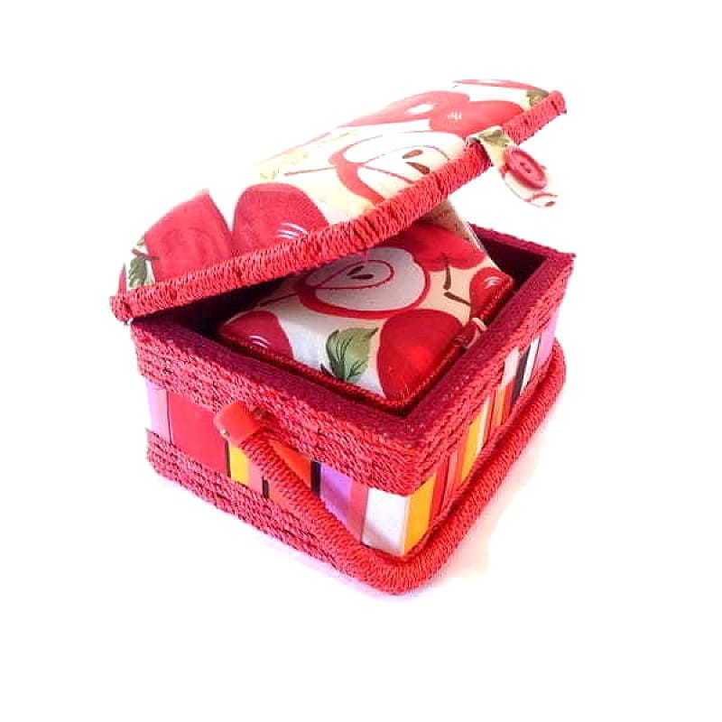 Ozdobny koszyk-kuferek do przechowywania przyborów do haftu lub do szycia.