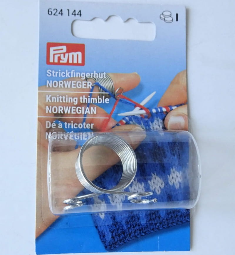 Naparstek metalowy  pomocny przy wykonywaniu żakardów na drutach.