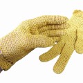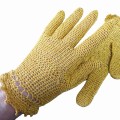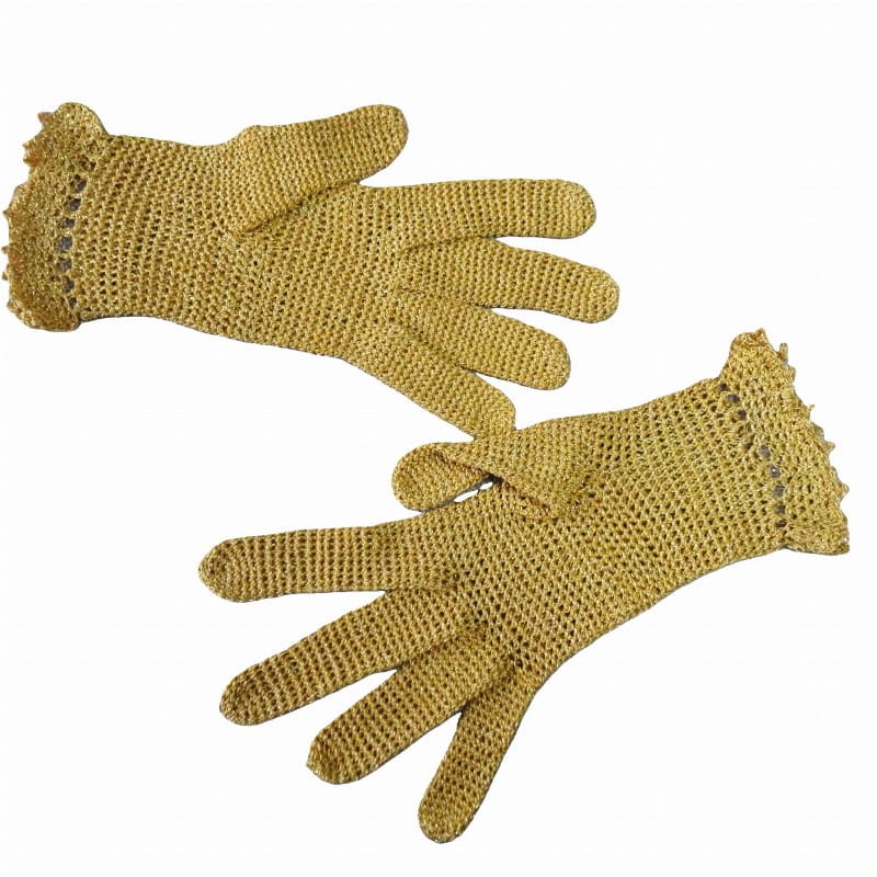 Rękawiczki wykonane ręcznie szydełkiem z nici bawełnianych z nitką błyszczącą