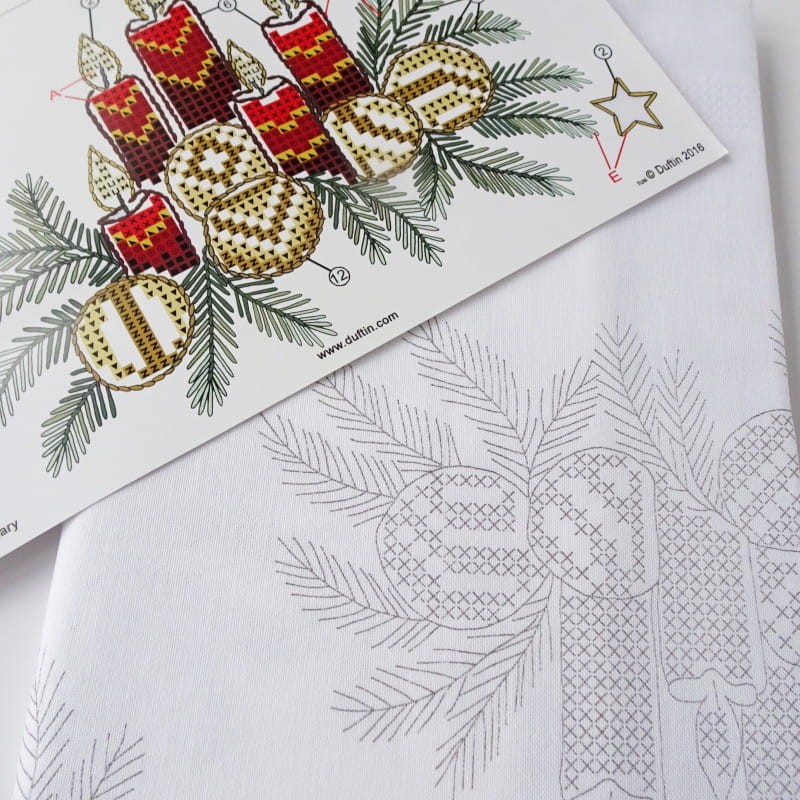 z narysowanym wzorem świątecznym, z wykończonymi brzegami  żakardem .