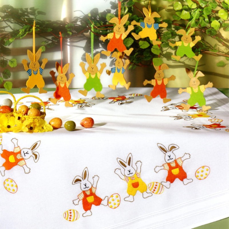 Serweta do haftu płaskiego z narysowanym wzorem wielkanocnym