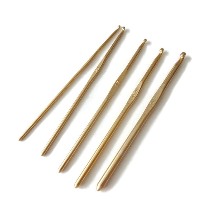 Szydełko metalowe w kolorze złotym o długości 14 cm,