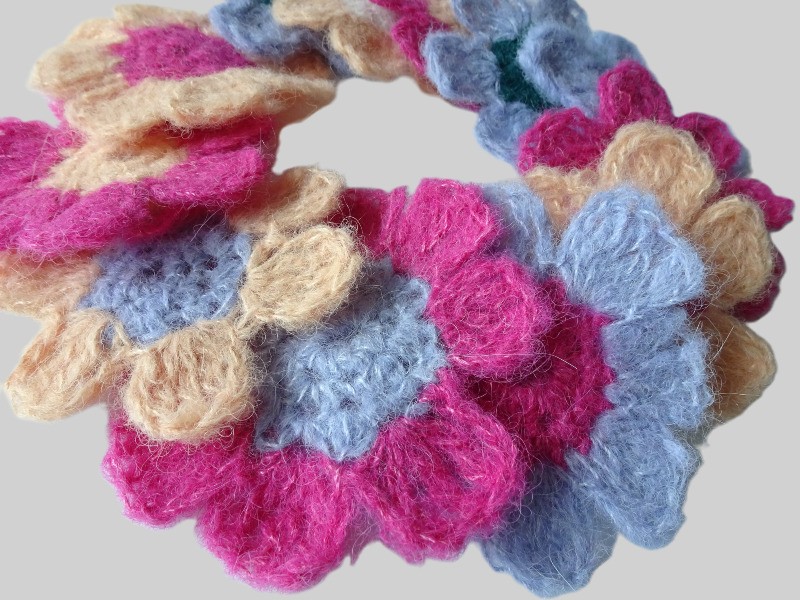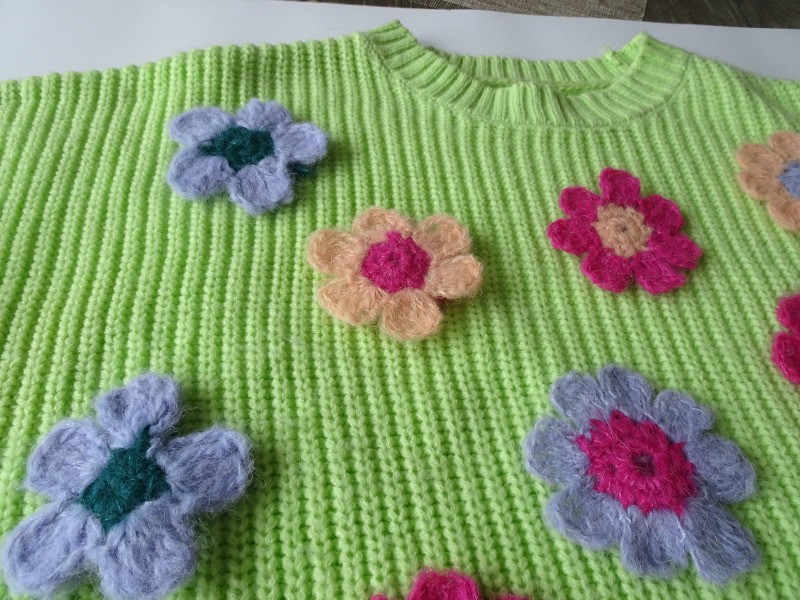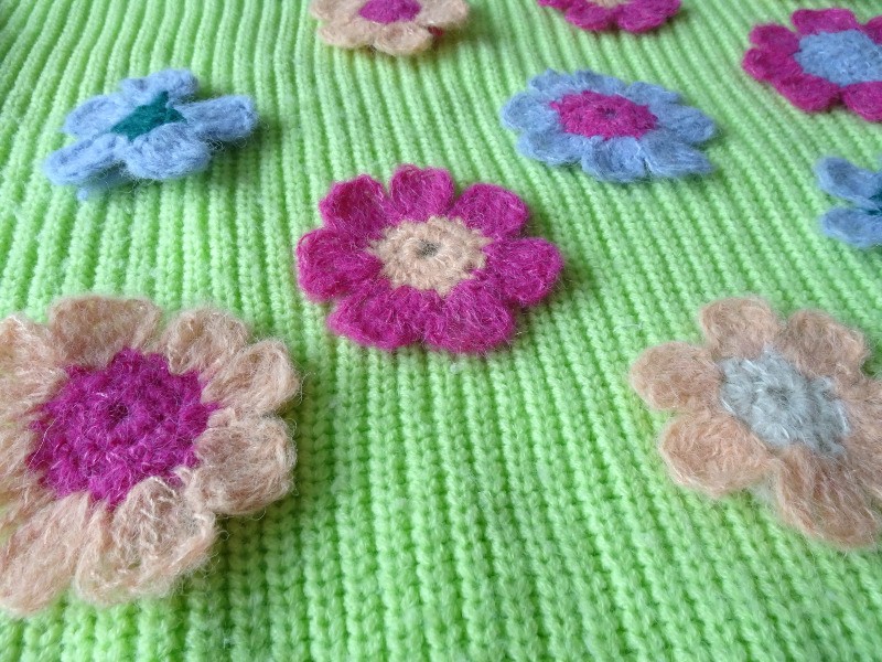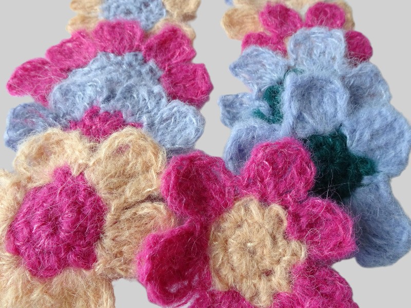 Szydełkowe aplikacje- kwiatki wykonane z włóczki