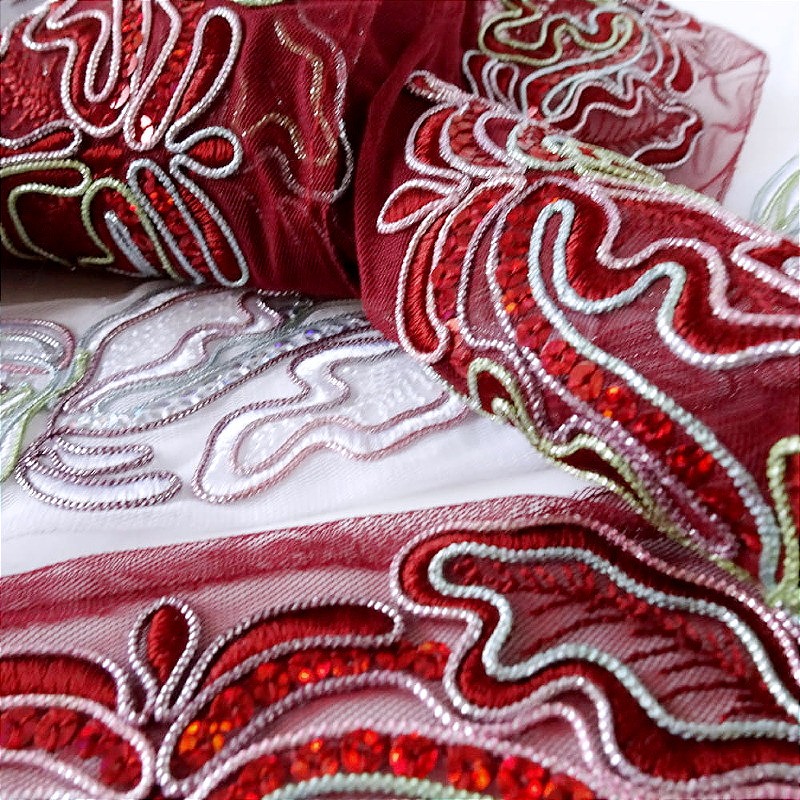 Taśma ozdobna haftowana na tiulu,