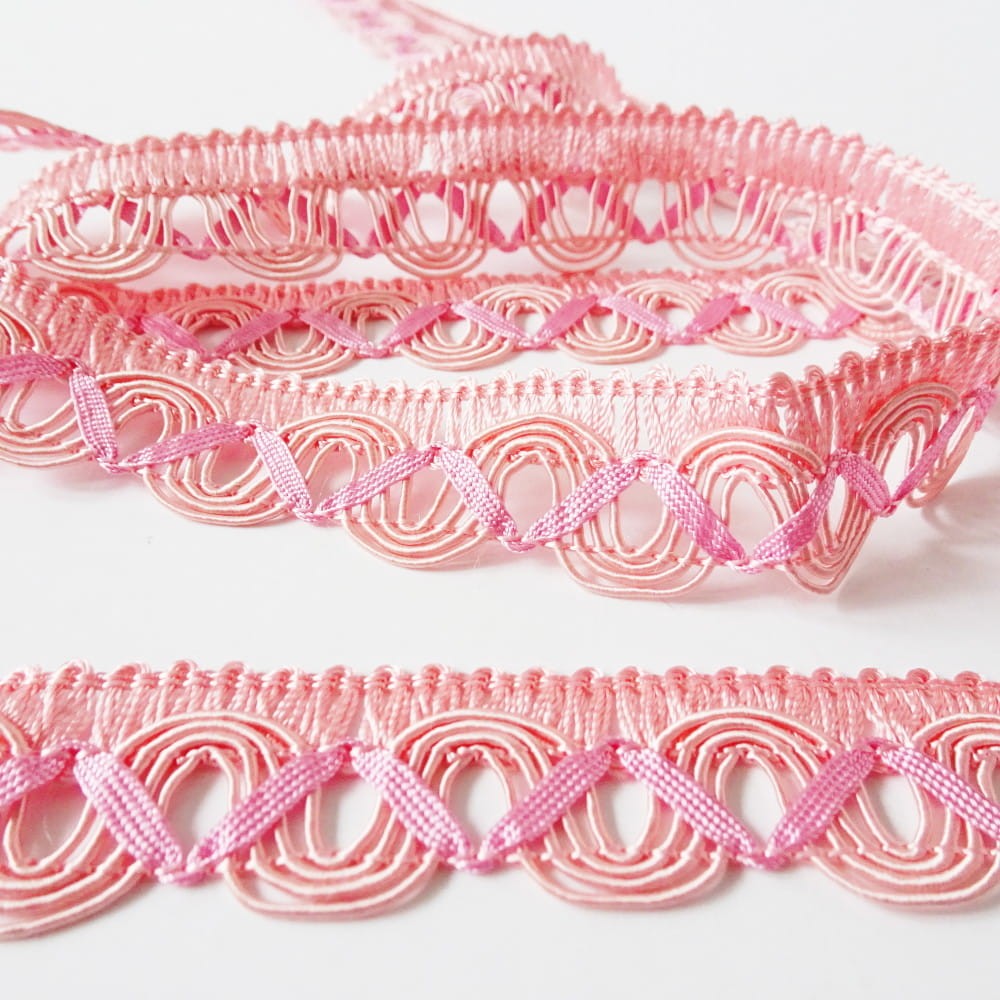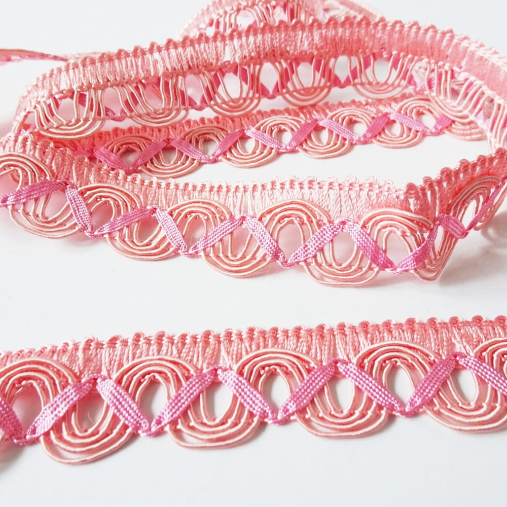 Taśma ozdobna, tapicerska o szerokości 2 cm w kolorze różowym.