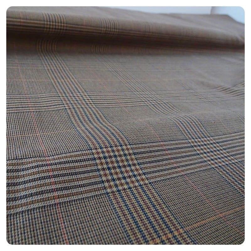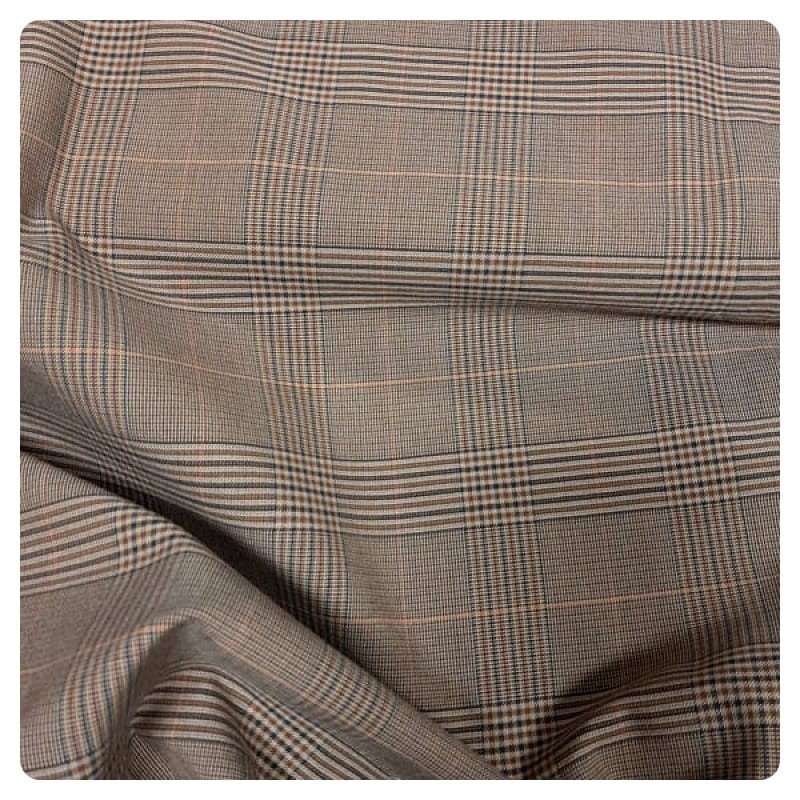 Tkanina  w brązowo-kakaową kratkę ( 2,5 cm x 2 cm),
