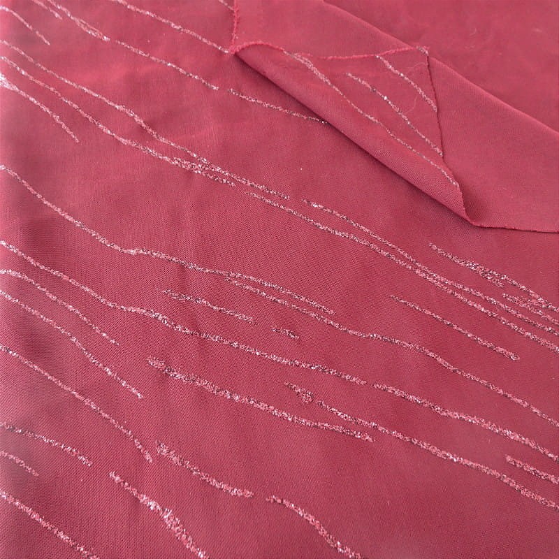 Tkanina dzianina elastyczna w kolorze bordowym ze wzorem z brokatu