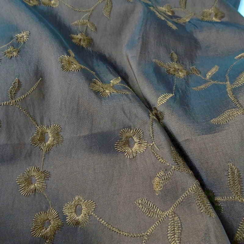 Tkanina taftowa brązowa z haftem kupon/2mb