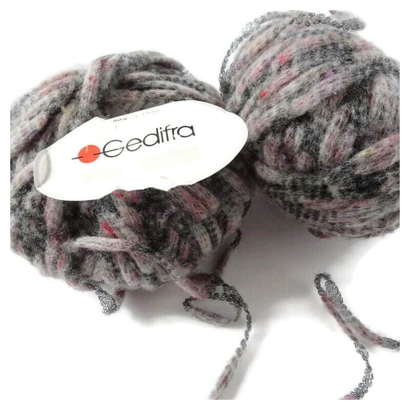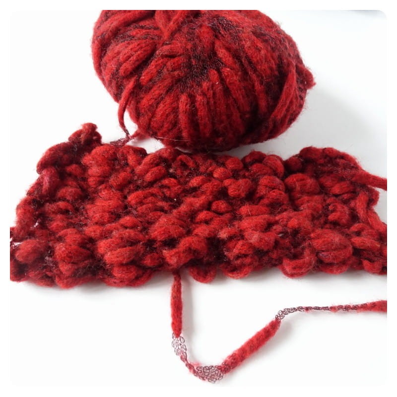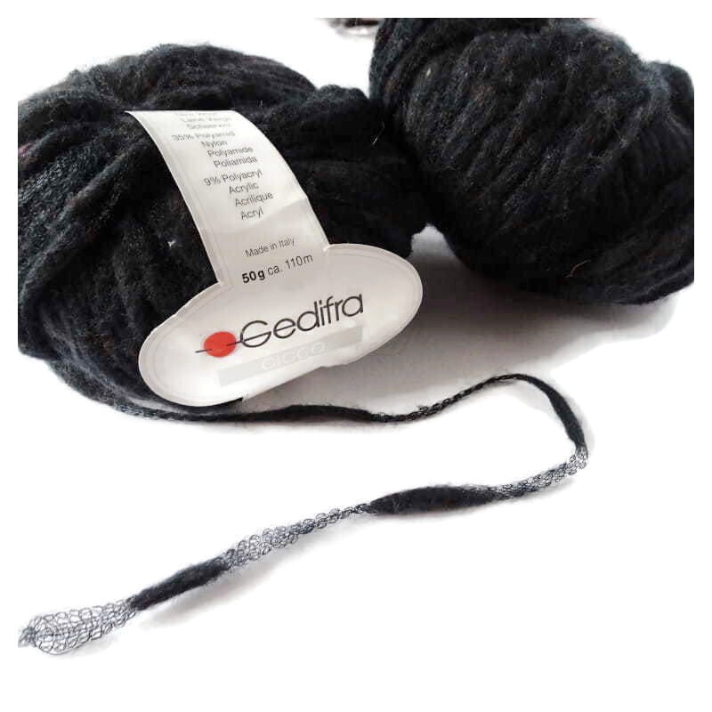 Włóczka w formie tasiemki ze wstawkami siatki tiulowej.