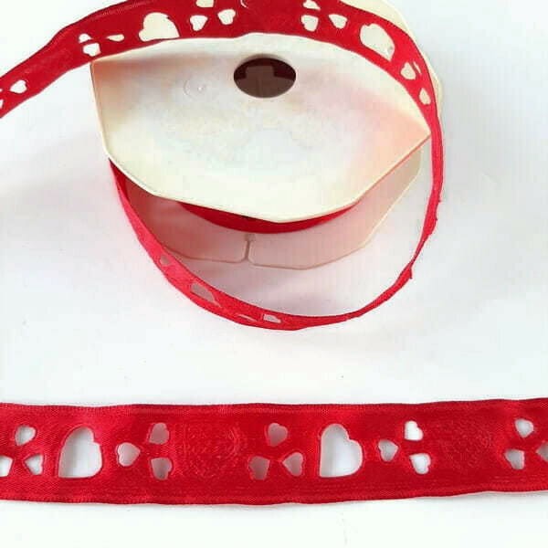 Wstążka w czerwone serca (wycinane) z tkaniny,